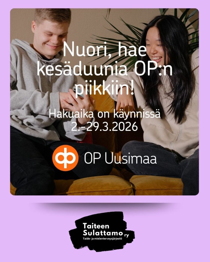 Hei, 15-17 vuotias nuori, hae kesätöihin Taiteen Sulattamolle!